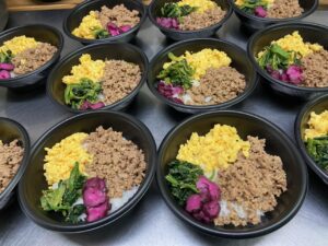 今月は肉そぼろ弁当でした(^^)/また角田市より焼きいも屋さんも来てくれました。